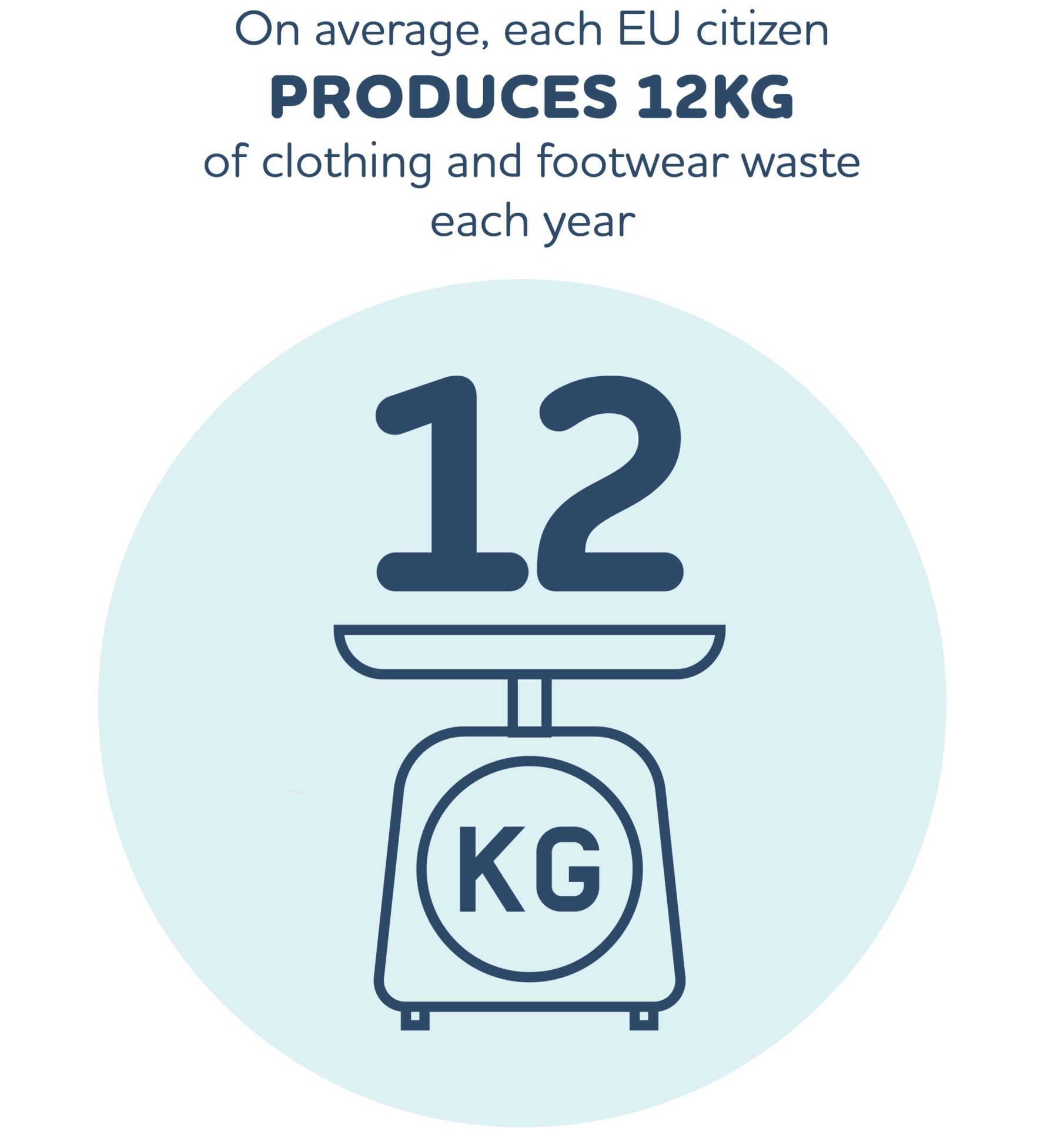 Textile consumption in the EU rose from 17kg per person in 2019 to an average of 19kg per person in 2022—enough to fill a large suitcase. At the same time, around 12kg of clothing per person is discarded each year.